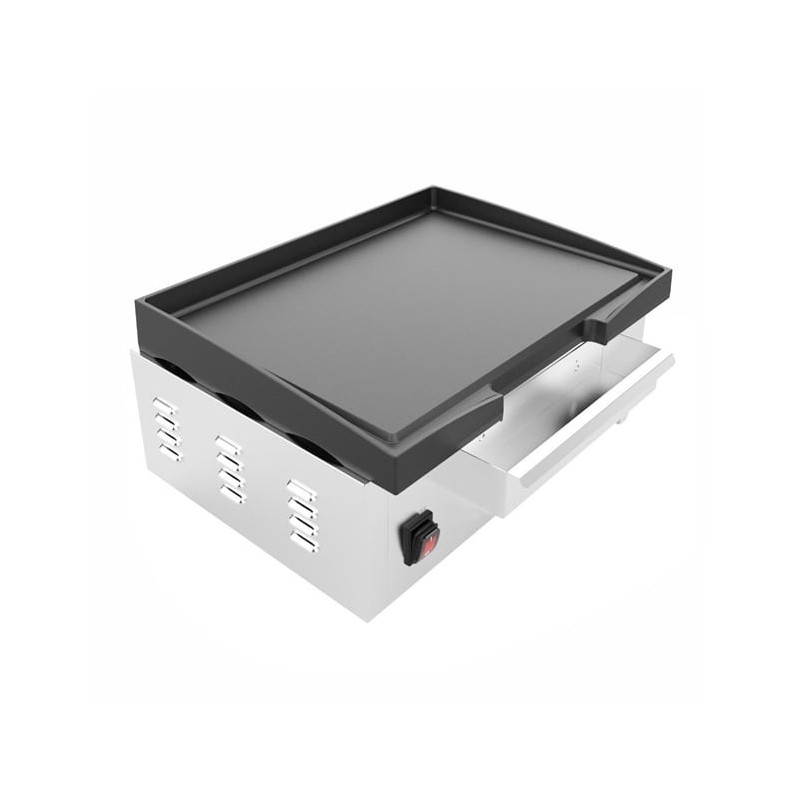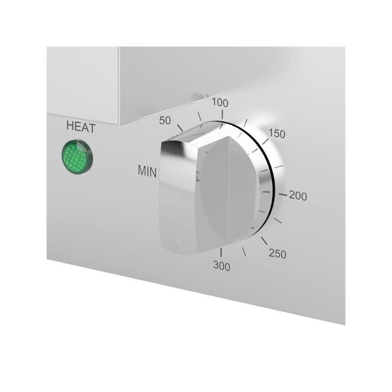 Designed to help you achieve fantastic cooking results, the griddle features an incredibly durable smooth cast iron surface which is perfect for cooking meats, vegetables, fish and eggs. With its impressive 2.8kW element, the griddle can reach up to 300°C - easily adjusted with the front-mounted dial thermostat. The thick cast iron plate also helps to retain heat well too, reducing recovery times between cooks.