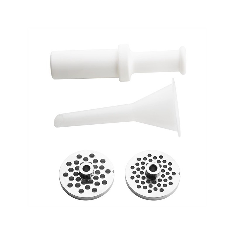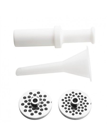 - Plastic pusher and sausage stuffing tube included
