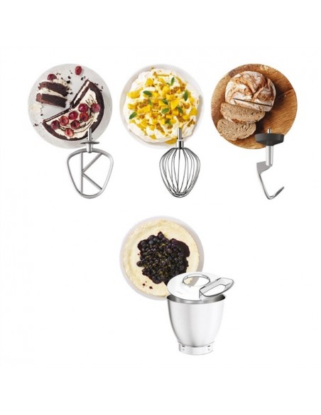 The Kenwood Titanium unique LightLift head makes easy work of adding ingredients to your mix. Simply press the head release button and pop them in. No mess, no fuss. The signature K-Beater accompanies two more aluminium baking tools - a dough tool and whisk. They're all tried, tested and easy to wash by hand.