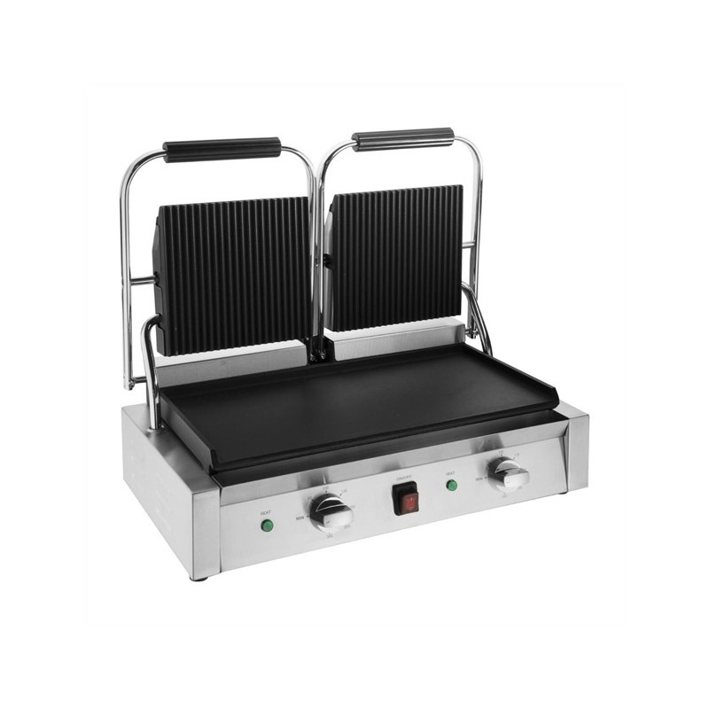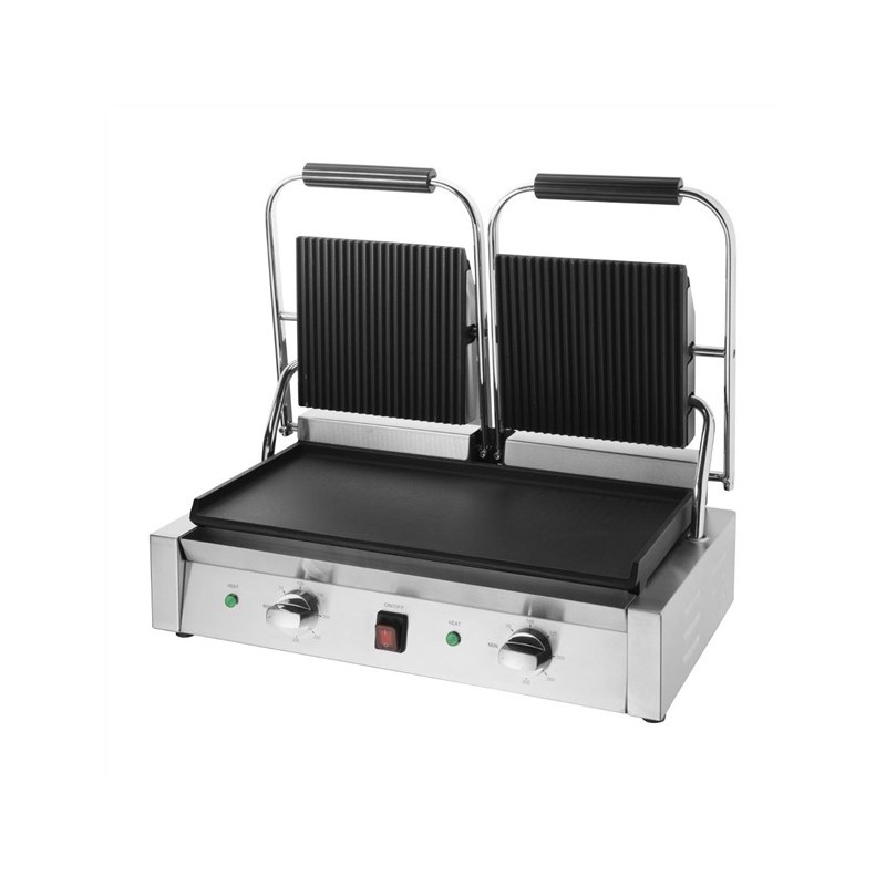 Buffalo Bistro Double Contact Grill - Ribbed top Flat bottom plates