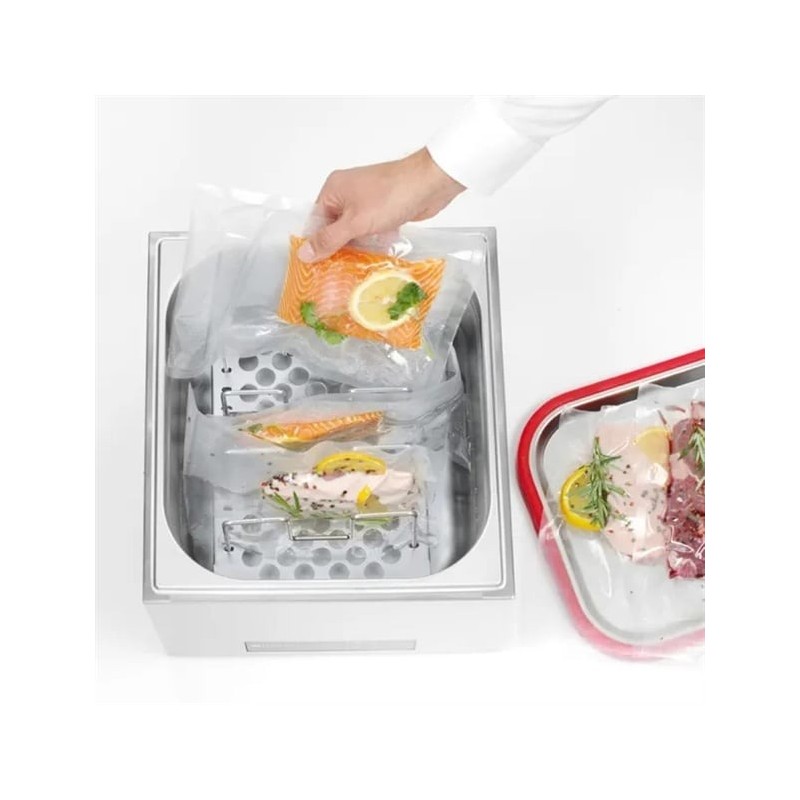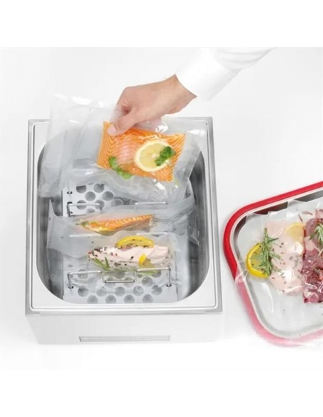 Facilitating efficient organisation, the water bath includes 4 movable stainless steel partitions for easy separation of food during the cooking process. This not only enables greater portion control but also aids in identifying different sections of food for convenient cooking. The partitions are particularly useful for distinguishing products just placed in the bath from those already prepared and 'on hold.'