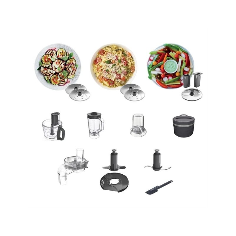 - Comes with everything you need to get started. Large 3Ltr bowl to essential tools for fast, effortless chopping, slicing and grating. Prepping veg, salads and herbs is easy