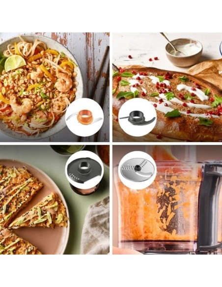 - Supplied with a 2-in-1 Slicing/Grating Disc, Chopping Knife Blade, Emulsifying tool, Dough tool,1.2Ltr Blender