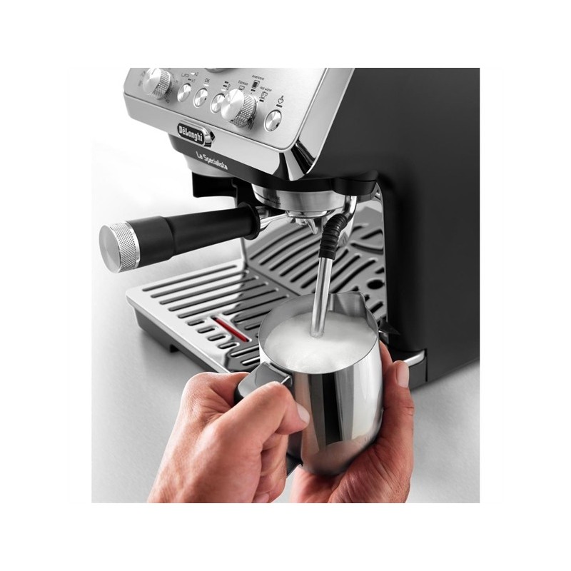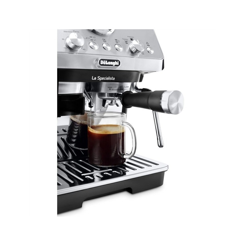 Compact and stylish, the De'Longhi La Specialista Arte allows you to live the barista experience at home. You can choose from three infusion temperatures and eight grind settings or, using the My LatteArt system, you can handcraft milk beverages. Creating the perfect milk texture is effortless and repeatable. La Specialista Arte comes complete with barista kit: a professional tamper, a tamping mat, as well as a dosing and tamping guide for a mess-free experience, a milk jug and two unpressurised filter baskets.
