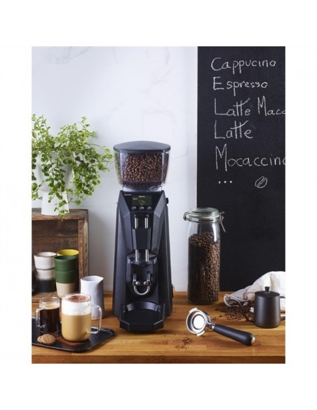 The Santos on-demand coffee grinder #59TA-PLUS in black is a great choice for making a high quality espresso. Used alongside a traditional barista coffee machine, the Santos #59 expertly grinds and dispenses highly precise doses directly into your portafilter, speeding up the process without any compromise in coffee quality.