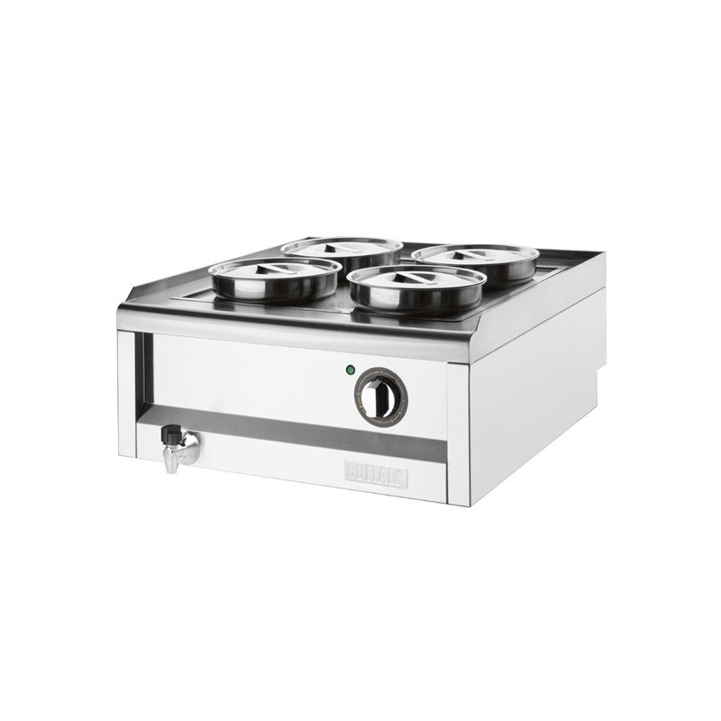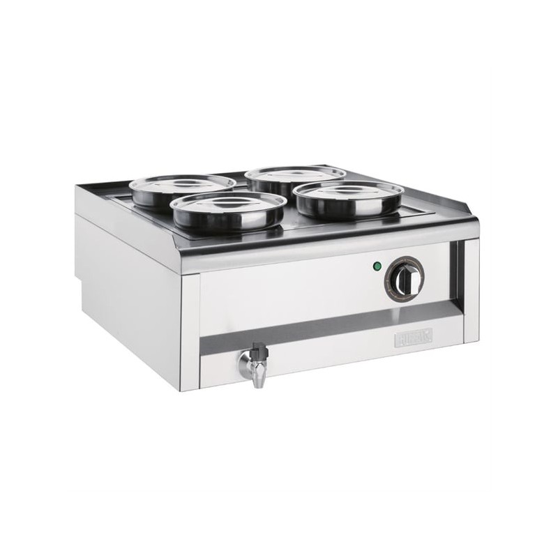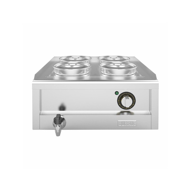 Part of the innovative Buffalo 600 Series, the Buffalo countertop four pot bain marie is an excellent heavy duty solution for keeping food warm. With capacity for up to four litres in each pot, the Buffalo 600 series bain marie offers a truly impressive holding capacity, giving you plenty of space for large batches of gravy, beans, soup or other similar liquid foods.