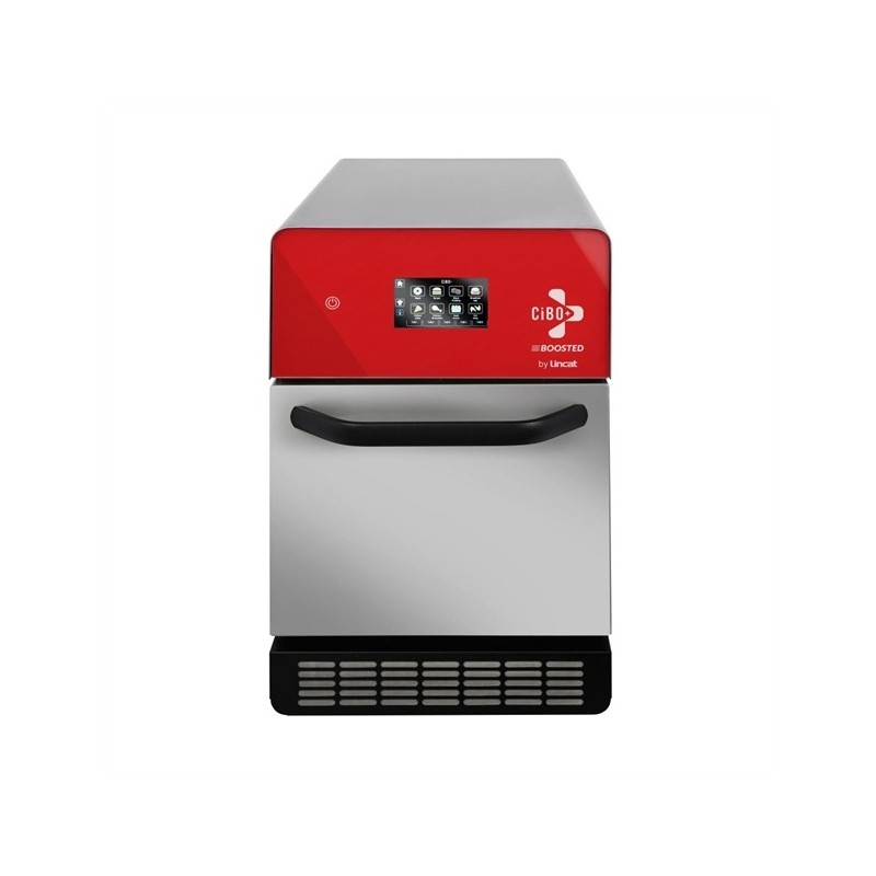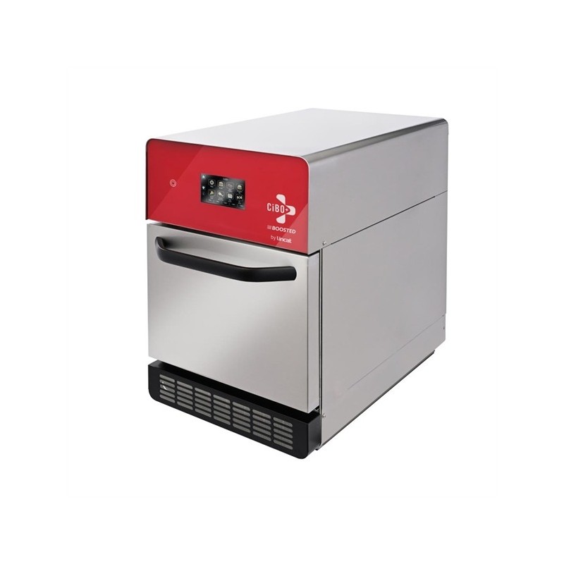 Powerful. Fast. Energy-saving. The three phase Lincat CiBO+ Boosted high speed oven in red is specifically optimised for high demand areas. Using unique, patented tri-heat technology, the oven cooks with a mixture of microwave, TurboAir and ContactBase cooking to provide deliciously perfect results up to 25 x faster than conventional methods. This intelligent design not only means that food is cooked much faster - it also delivers improved consistency, quicker recovery and high levels of food quality - even when cooking from frozen.