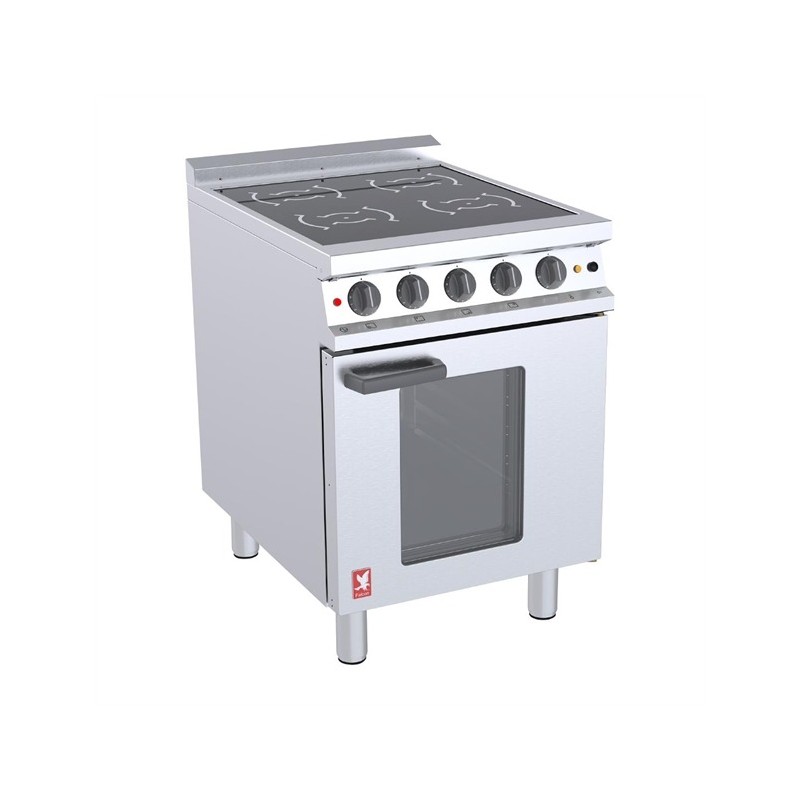 One Series induction is perfect for Chefs in operations that have lower demand or service times, including care homes, cafés and coffee shops. It offers all the benefits of induction - speed, control, energy efficiency, easy clean, low heat emission - along with the build quality and reliability you expect from Falcon, just with lower power, performance and cost than Falcon's standard induction models. The top features 4 x 1.85mm heat zones, that are 180mm in diameter. Zones can be Boosted to 3kW for up to 10 minutes to give an additional heat boost when required. The hob sits above a 1/1 GN fan-assisted oven with glass panelled door that can be supplied with left or right hand hinge.