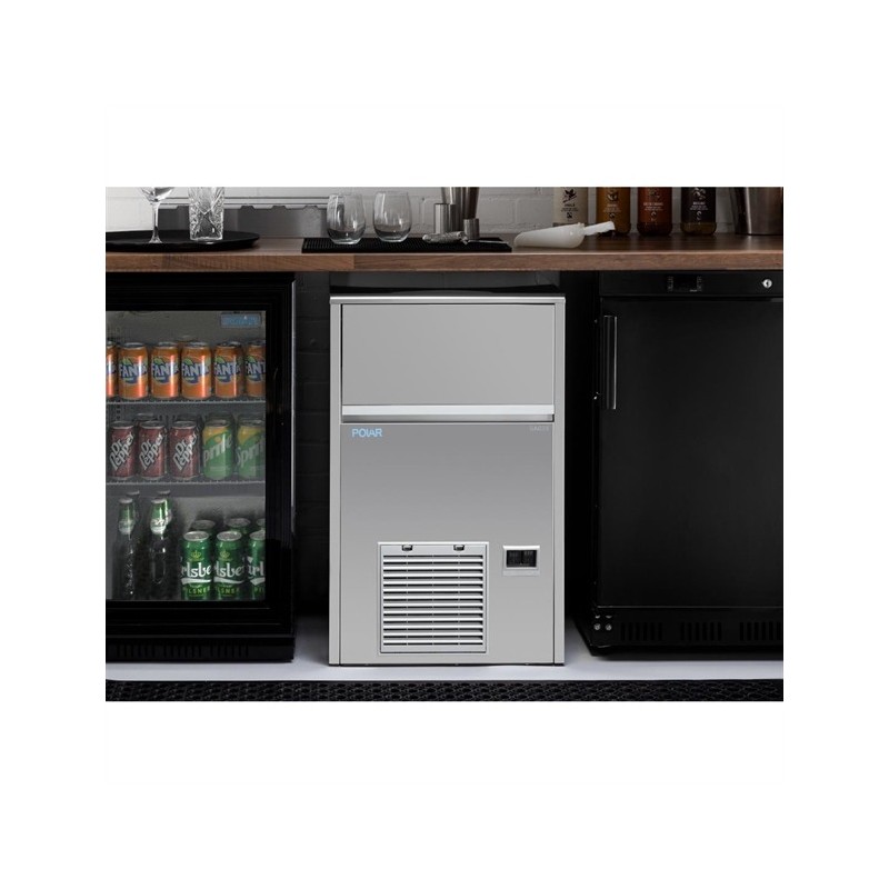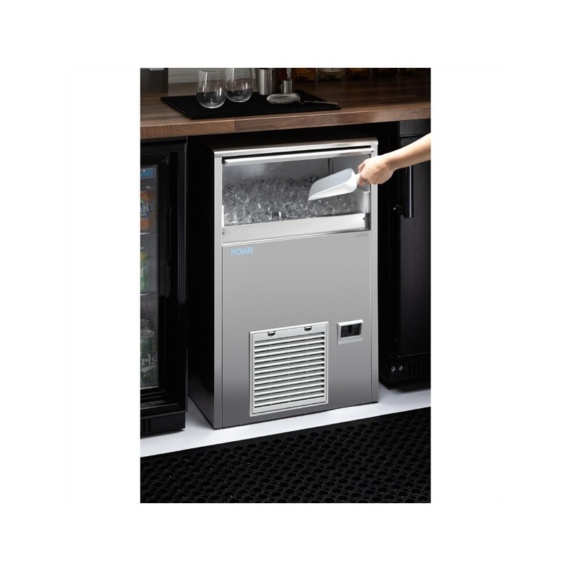 Operation and maintenance is simple, with front-mounted controls and strong, easy-clean construction throughout. The Polar also includes an automatic cleaning cycle, helping to keep your ice clean and hygienic throughout your busy services. And thanks to the generously-sized 28kg ice storage bin, you'll always have plenty of ice ready to use whenever you need it.