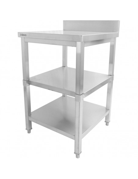 Commercial Work table Stainless steel 3 tiers Backsplash Square legs 2200x600x900mm | Stalwart DA-DW3T22060B