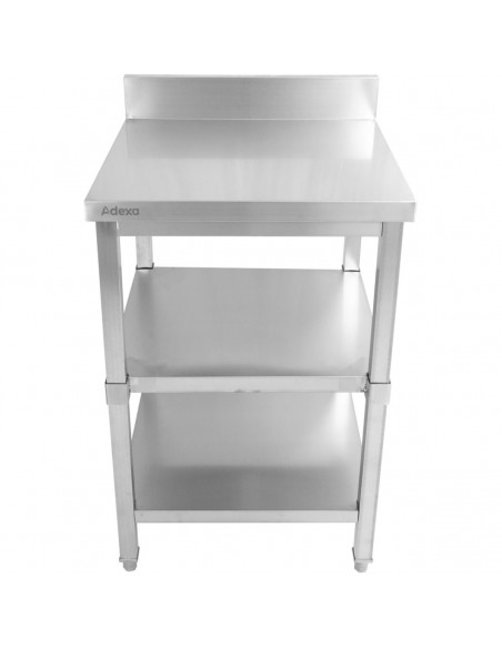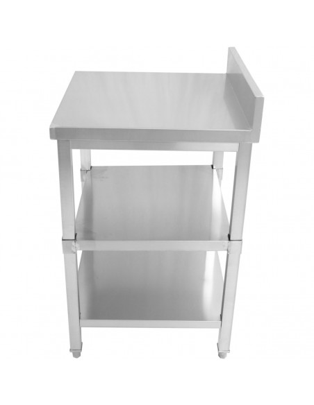 Commercial stainless steel work table with 3 tiers and backsplash. Amazing value for money stainless steel work table, suitable for suitable for any restaurant, hotel or similar catering kitchen establishment.