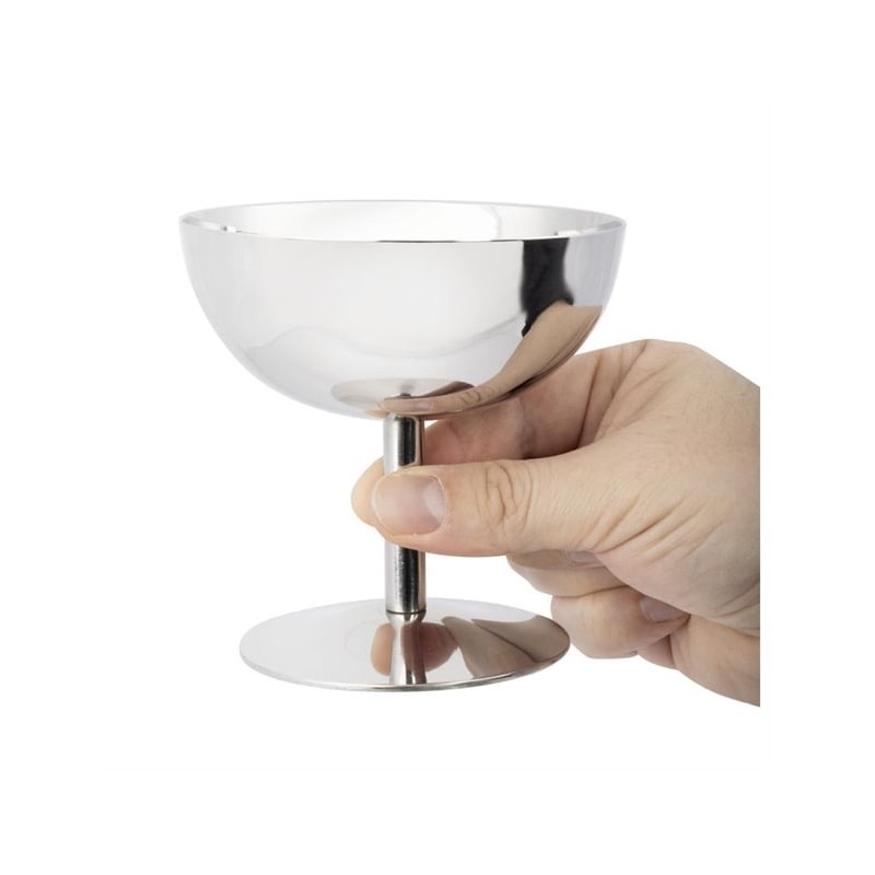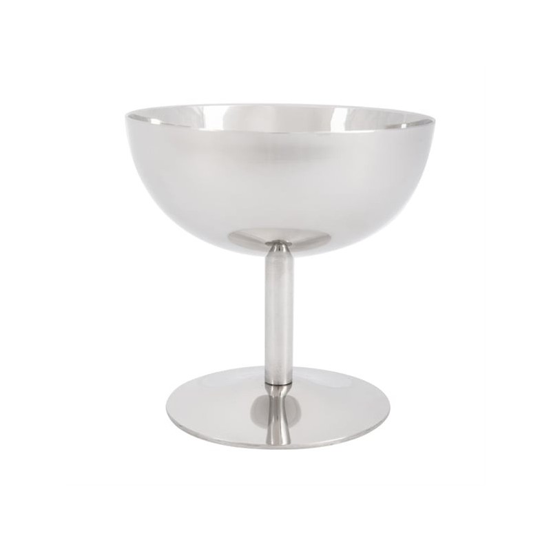 Elevate your dessert presentation with this elegant 250ml stemmed sundae cup from Olympia. Its sleek coupe bowl design adds a touch of sophistication to your table settings, while its durable stainless steel construction ensures years of reliable service. Designed with practicality in mind, this Olympia sundae cup is dishwasher safe, ensuring efficient and easy cleaning after each use.