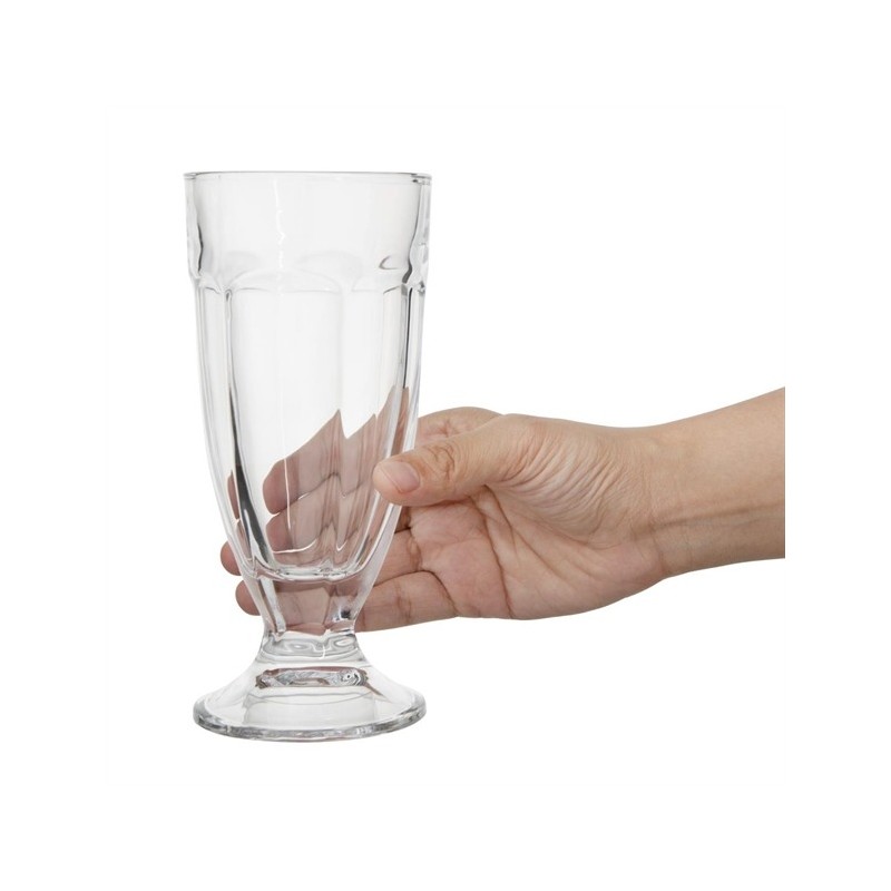 Serve up desserts in style with this elegant set of six tall sundae glasses from Olympia. With a classic shape, these glasses complement any table, casual or formal, and are perfect for serving sorbet, sundaes, soft serve ice cream and other desserts. The 340ml glasses are made of soda lime glass, which is known for its good clarity and scratch resistance. They are also dishwasher safe, allowing for a quick turnaround of fresh glassware during service.