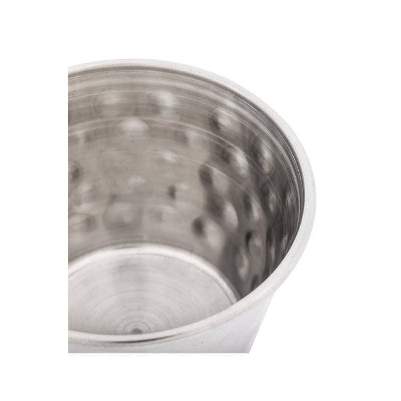 These 70ml hammered sauce cups from Olympia are a stylish and convenient way to serve a variety of dips, sauces and condiments. The hammered stainless steel finish adds a touch of rustic charm to table settings, while the cups' stackable design makes them easy to store when not in use.