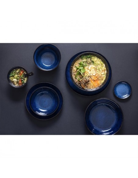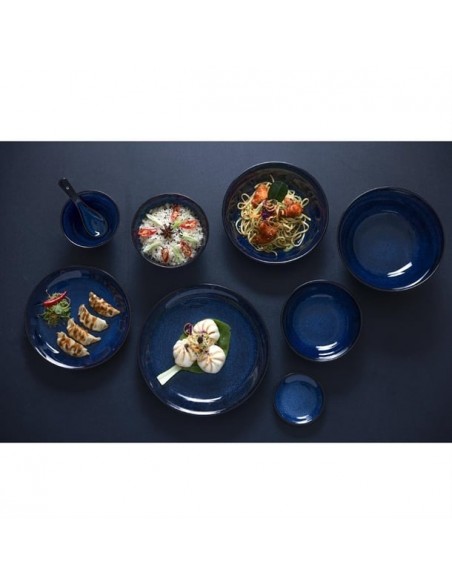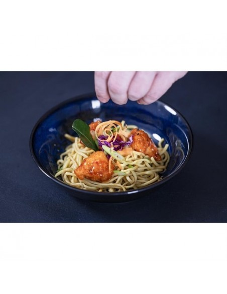 Olympia's Luna range has a midnight blue reactive glaze on the face of the plate/bowl, complemented by a black outer rim and outer edge. This deep colour glaze serves as the perfect backdrop to make fresh and bright ingredients pop. Predominantly made up of bowls, Luna is tailor-made for noodle, rice and broth-based dishes.