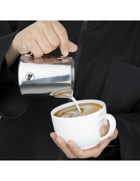 Olympia's vegan milk jug expands your tea and coffee service options. Crafted from durable, heat-resistant stainless steel with a sleek mirrored finish, this milk jug is built to withstand daily use. The generous 340ml capacity perfectly accommodates your favourite dairy alternatives, whether it's oat, soy, coconut, almond or pea milk. The non-drip spout ensures clean, mess-free pouring, while a subtle leaf motif adorns the side, distinguishing it from traditional dairy milk jugs.
