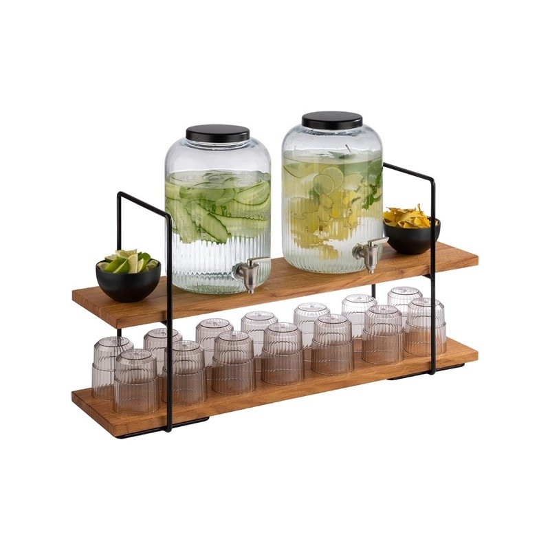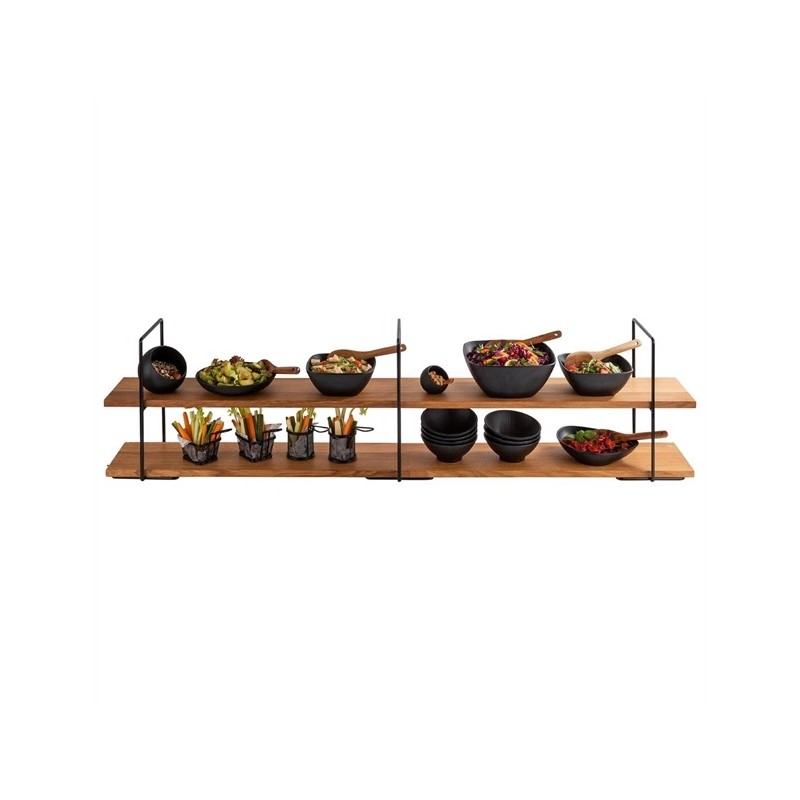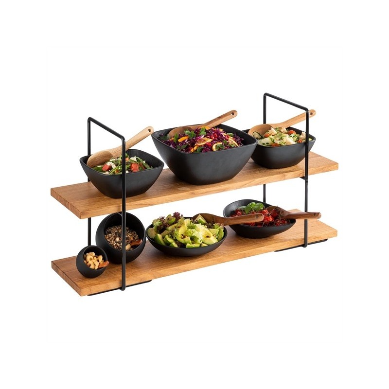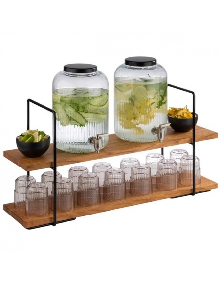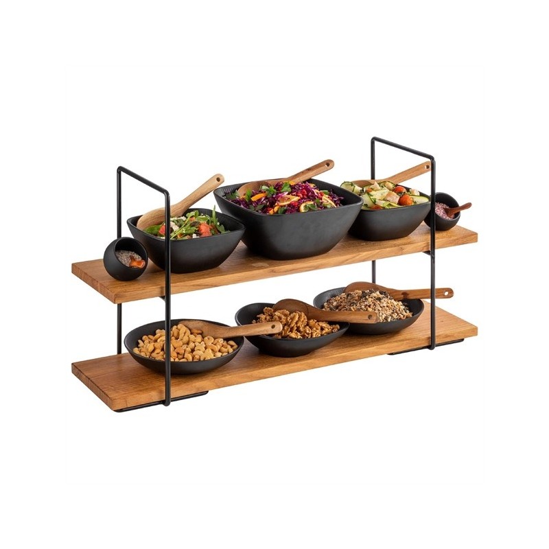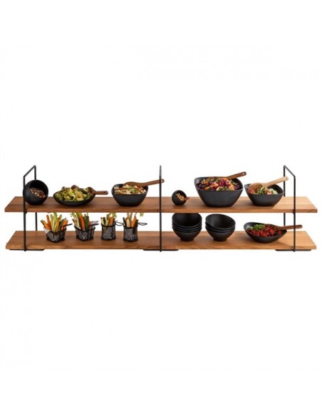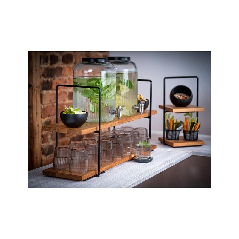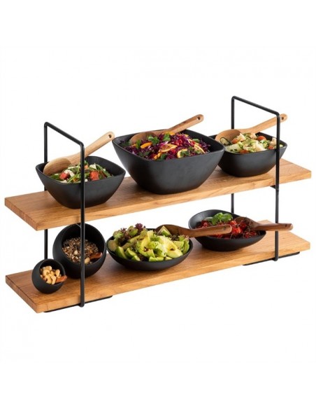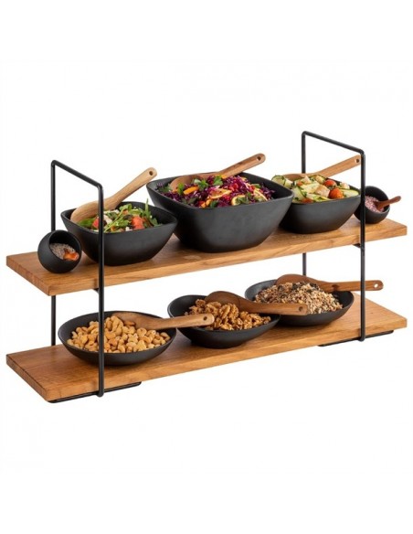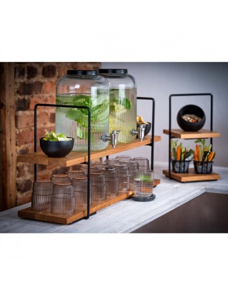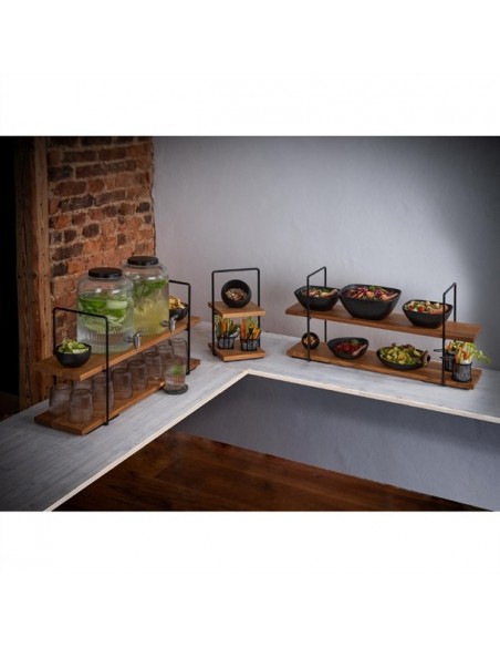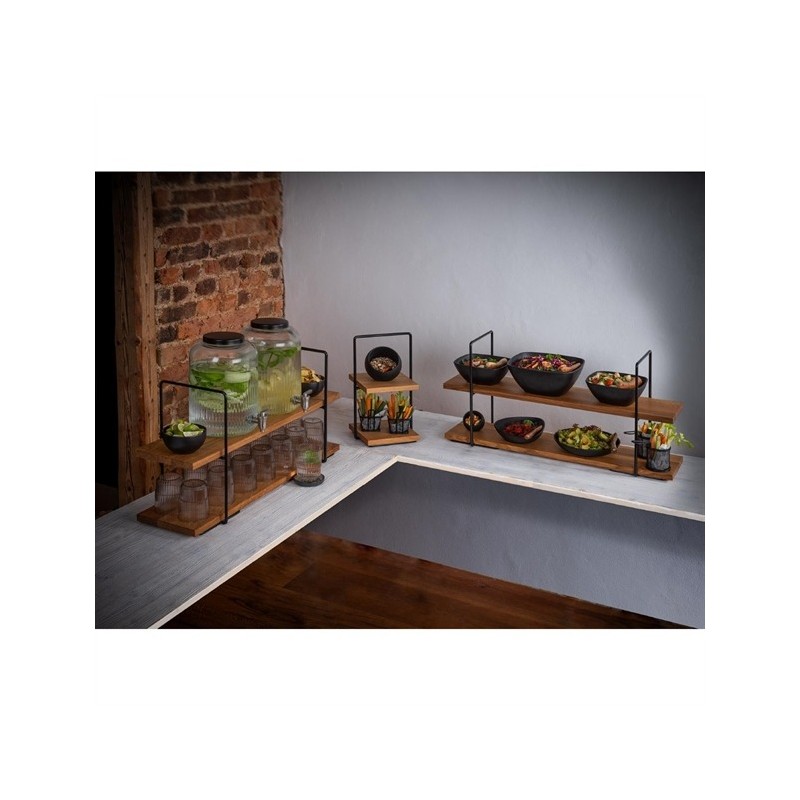 You can present your food in an elegant way with this stylish two-tiered stand from APS. The stand has a high-quality metal frame in black with an anti-slip coating. The two shelves are made of oiled oak, which adds a lovely, natural touch to the design. For convenience, the etagere is very easy to clean and can simply be wiped clean with a damp cloth. None of the parts are dishwasher safe.