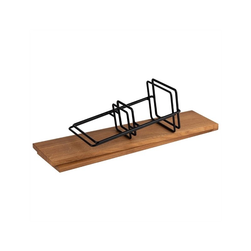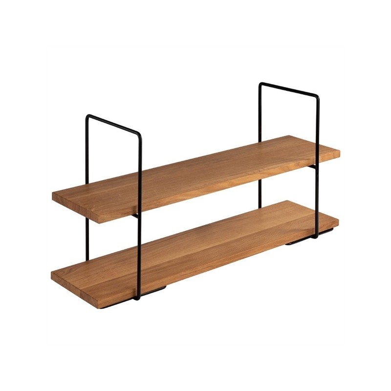 - Frame is made from high-quality black metal and shelves are crafted from oiled oak