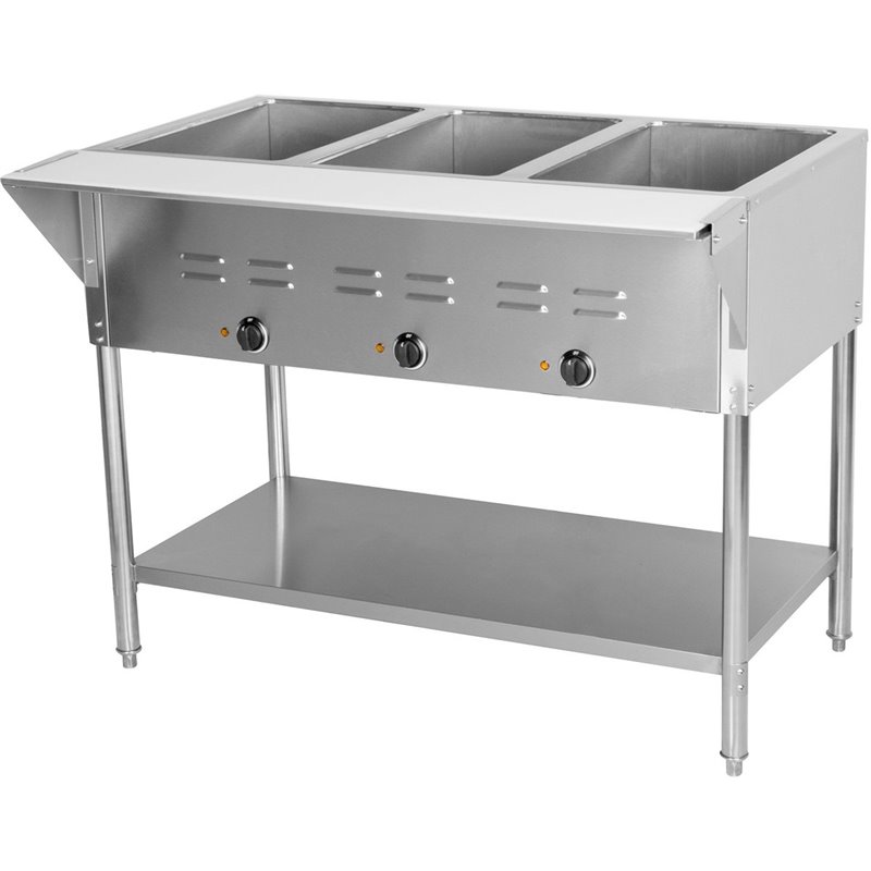 Make sure your hot food is being held at safe temperatures on your serving line with this professional open well electric steam table! Made for dry use, this steam table comes with all the features you are looking: independent wells, durable stainless steel construction, a convenient undershelf for storage, and a full-length cutting board.