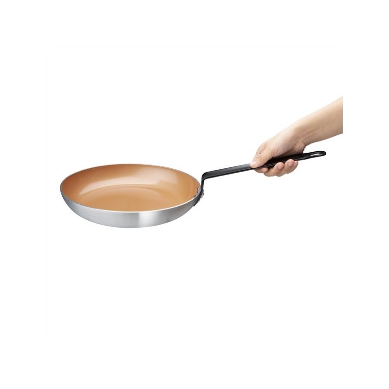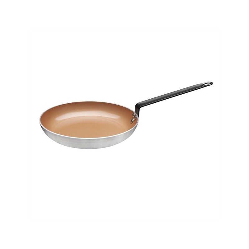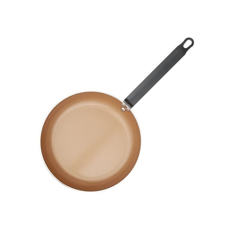 You'll benefit from improved dish presentation, as well as far quicker clean-up times afterwards with this high quality professional pan. The ceramic coating offers a great alternative to traditional non-stick coatings, perfect for light commercial, as well as home use too.. The long handle also helps keep hands at a safe distance when frying.