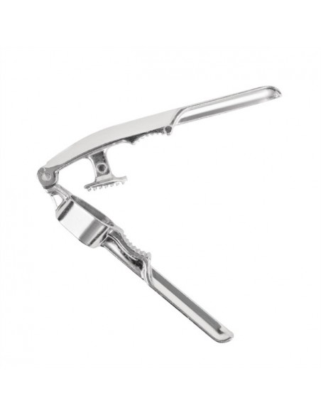 Crush garlic with ease with the Vogue hand operated garlic press. With integrated ridges, slight pressure can be used to loosen the peel of garlic cloves. Therefore, saving time and increasing efficiency.