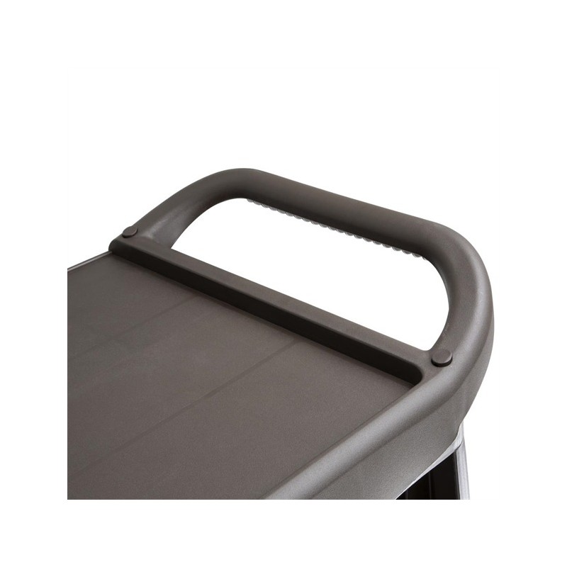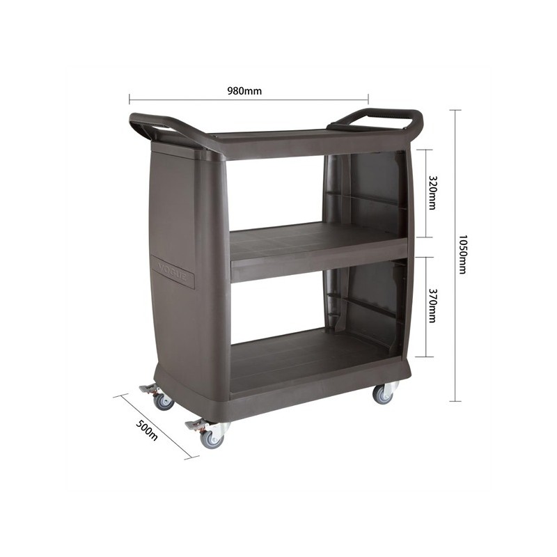 Whether you're transporting plates, refuse, small appliances or laundry, the Vogue polypropylene mobile trolley is a reliable solution for lightening the load.