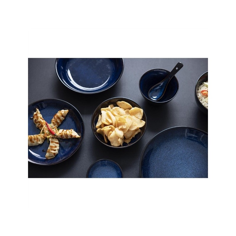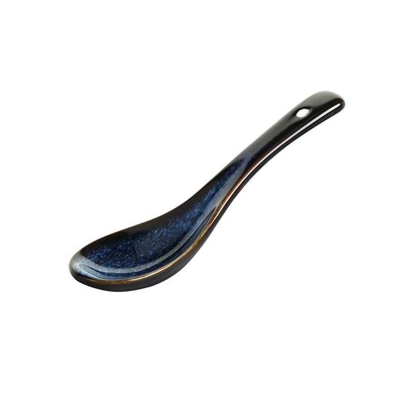 Olympia's Luna range is tailor-made for noodle, rice and broth-based dishes. With a decorative midnight blue reactive glaze, Luna serves as the perfect backdrop to make fresh and bright ingredients pop. In a set of 12, these Luna soup spoons feature an elegant form that curves gently from a wide, shallow bowl to a slender handle. Constructed from sturdy stoneware, the spoons pair beautifully with Luna's range of coupe and footed bowls.