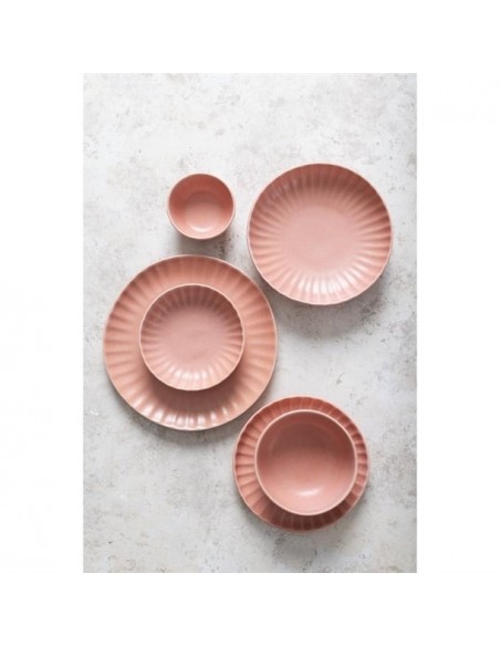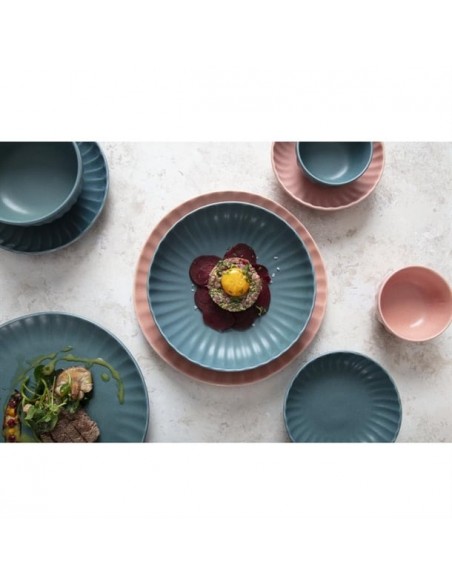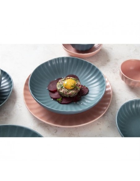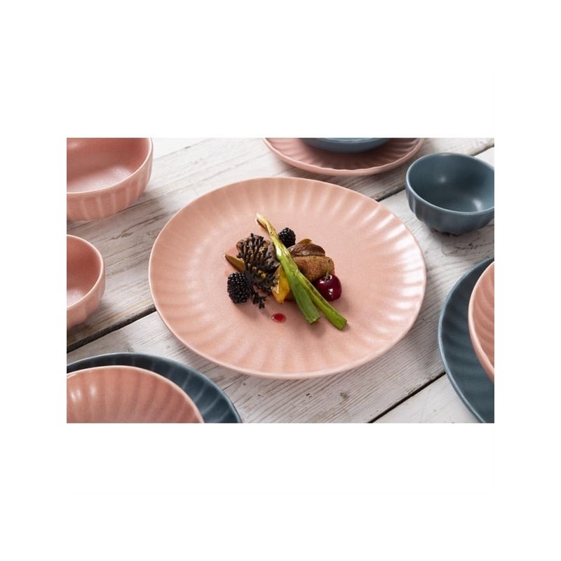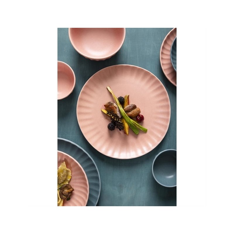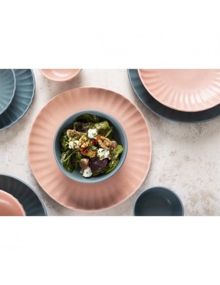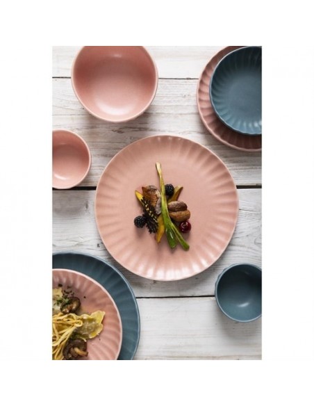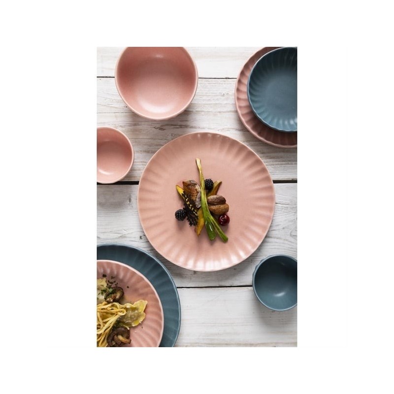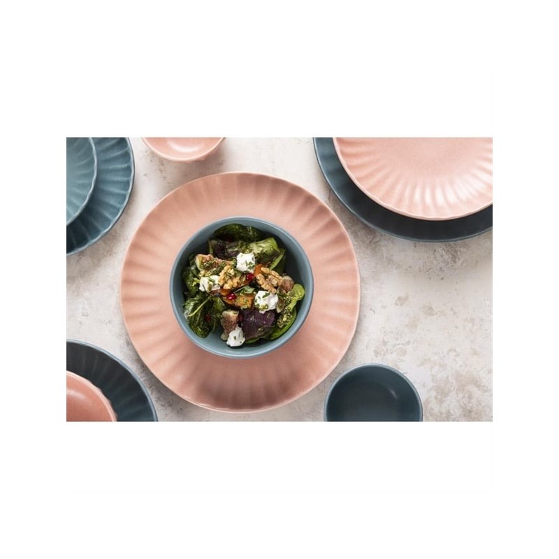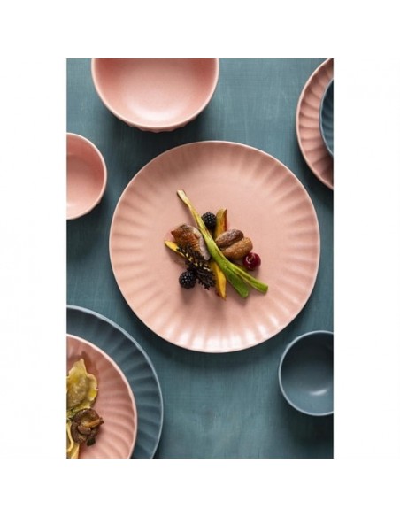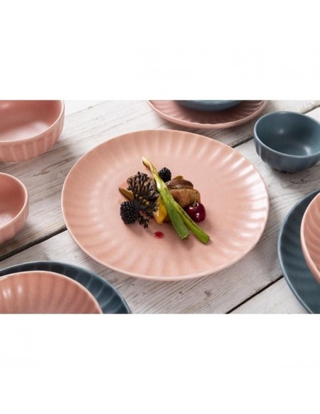 Tapping into the industrial trend's use of natural materials, the plates are finished in a peach colourway that captures the trend's contemporary appeal and organic warmth. The undulating fossil-inspired pattern adds the finishing touch, helping to frame your dishes - ideal for more experimental dishes that call for a bold backdrop to tie them together. Finished with an imperfect, rustic shape that captures the relaxed feel of handmade artisan pottery, and a flat base that gives you a wide canvas to get creative with when plating, this is crockery for the creative chef.