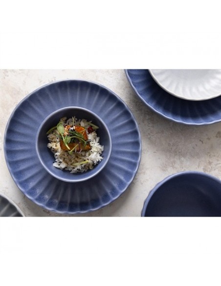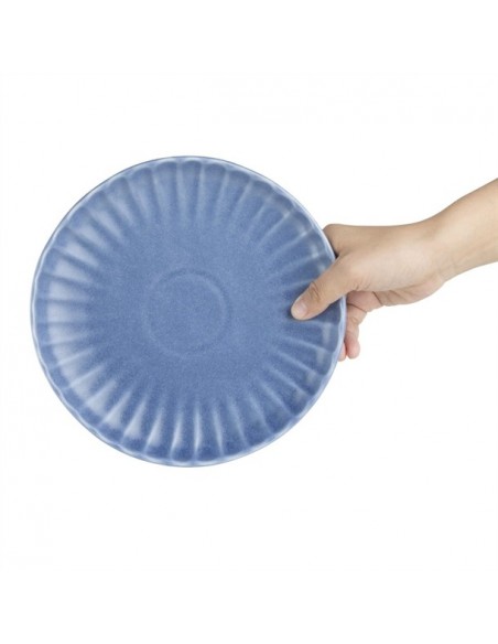 Tapping into the industrial trend's use of natural materials, the plates are finished in a blue colourway that captures the trend's contemporary appeal. The undulating fossil-inspired pattern adds the finishing touch, helping to frame your dishes - ideal for more experimental dishes that call for a bold backdrop to tie them together. Finished with an imperfect, rustic shape that captures the relaxed feel of handmade artisan pottery, and a flat base that gives you a wide canvas to get creative with when plating, this is crockery for the creative chef.