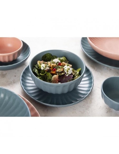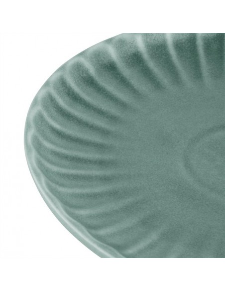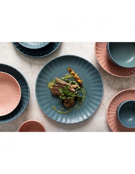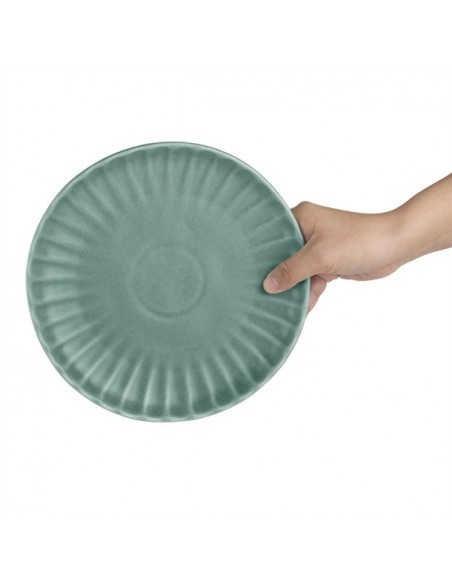 Tapping into the industrial trend's use of natural materials, the plates are finished in a green colourway that captures the trend's contemporary appeal and organic warmth. The undulating fossil-inspired pattern adds the finishing touch, helping to frame your dishes - ideal for more experimental dishes that call for a bold backdrop to tie them together. Finished with an imperfect, rustic shape that captures the relaxed feel of handmade artisan pottery, and a flat base that gives you a wide canvas to get creative with when plating, this is crockery for the creative chef.