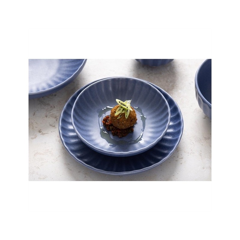 Tapping into the industrial trend's use of natural materials, it's finished in a blue colourway that captures the trend's contemporary appeal. The undulating fossil-inspired pattern adds the finishing touch, helping to frame your dishes - ideal for more experimental dishes that call for a bold backdrop to tie them together. Finished with an imperfect, rustic shape that captures the relaxed feel of handmade artisan pottery, and a flat base that gives you a wide canvas to get creative with when plating, this is crockery for the creative chef.
