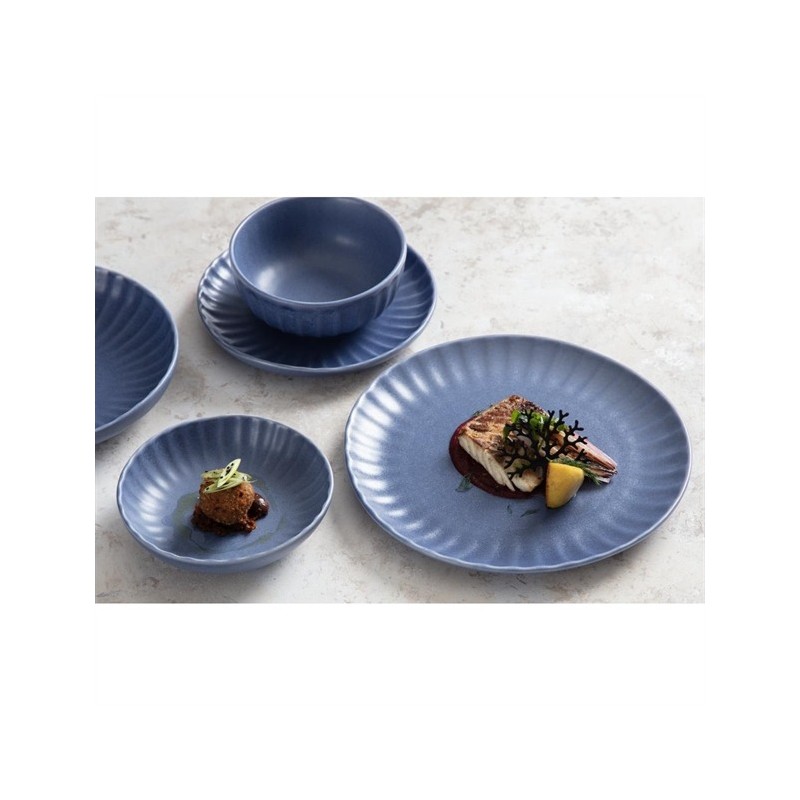 Tapping into the industrial trend's use of natural materials, it's finished in a blue colourway that captures the trend's contemporary appeal. The undulating fossil-inspired pattern adds the finishing touch, helping to frame your dishes - ideal for more experimental dishes that call for a bold backdrop to tie them together. Finished with an imperfect, rustic shape that captures the relaxed feel of handmade artisan pottery, and a flat base that gives you a wide canvas to get creative with when plating, this is crockery for the creative chef.