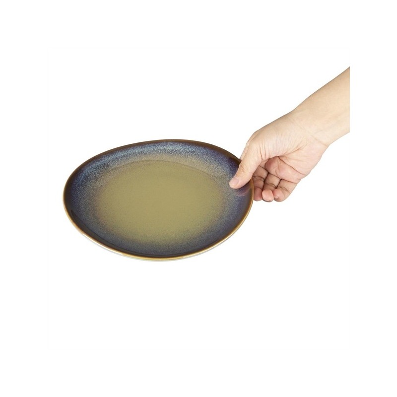 Create the ideal canvas for your vibrant dishes with these 205mm Olympia Birch coupe plates. Boasting a light internal colourway and finished with a aubergine reactive glaze, the plates work to complement the stunning colours within your food, perfectly enhancing the visual appeal of your meals. Crafted with a wide, curved rim, the plates are also incredibly eye-catching, giving your table settings a more unique and interesting look. Constructed from premium stoneware, the plates are exceptionally luxurious to the touch, ensuring your guests always associate your establishment with excellence.