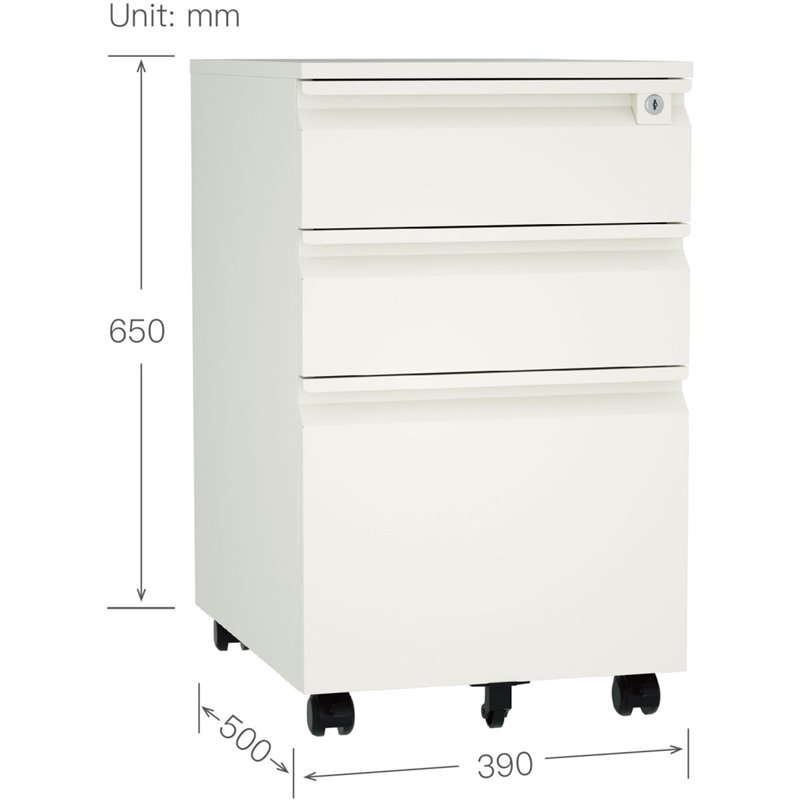 Professional Mobile Filing & Storage Cabinet 3 drawer 390x500x650mm White | Stalwart DA-SEMC1WHITE