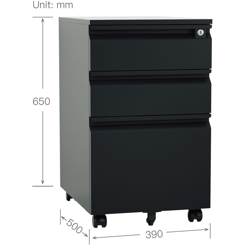 Professional Mobile Filing & Storage Cabinet 3 drawer 390x500x650mm Black | Stalwart DA-SEMC1BLACK