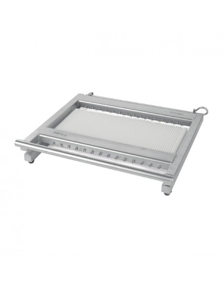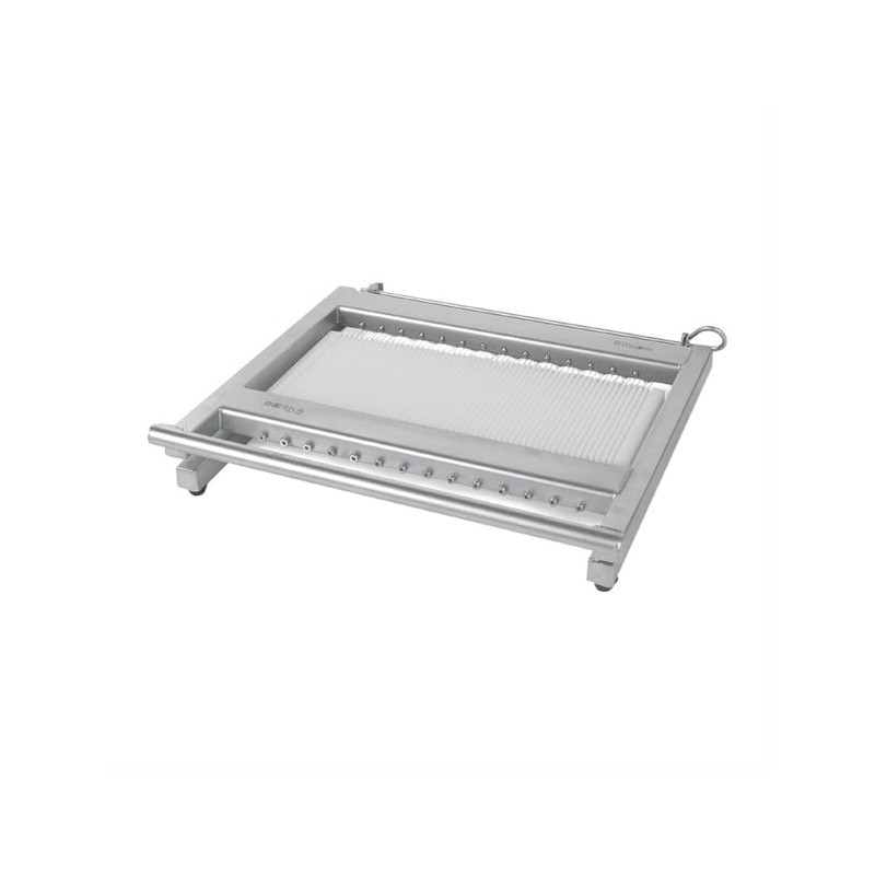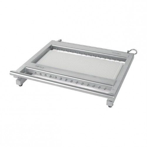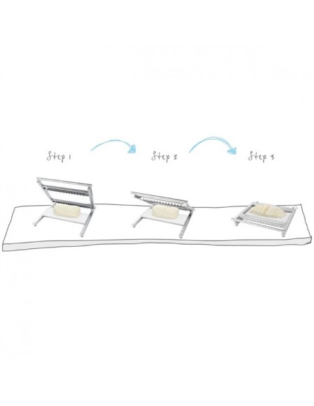 Designed to cut up to 56 slices at a thickness of 0.5 cm at a time, all it takes is one movement and the cheese is ready to go. Aside from mozzarella, the slicer can also be used to cut goat cheese and other similar soft cheeses without rinds. You can even use it to cut tofu and marzipan.