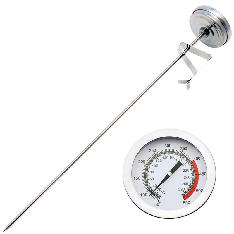 This wonderful stainless steel thermometer with dial display is ideal for deep fat fryers. With a dial display and 300mm puncture depth, this stainless steel thermometer is designed for fryer temperature measurement. With a wide range of 0°c to +280°c, this thermometer also includes an adjustable holding clip.
