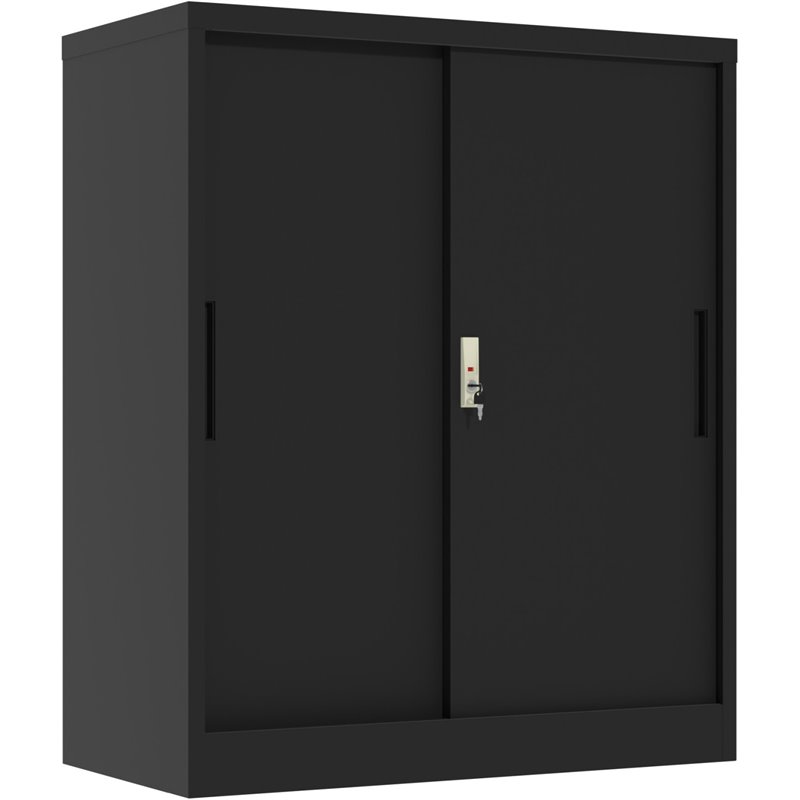 Professional Metal Storage Cabinet 2 sliding doors 800x400x1000mm Lock 2 adjustable shelves Black | Stalwart DA-MXHSC005BLACK