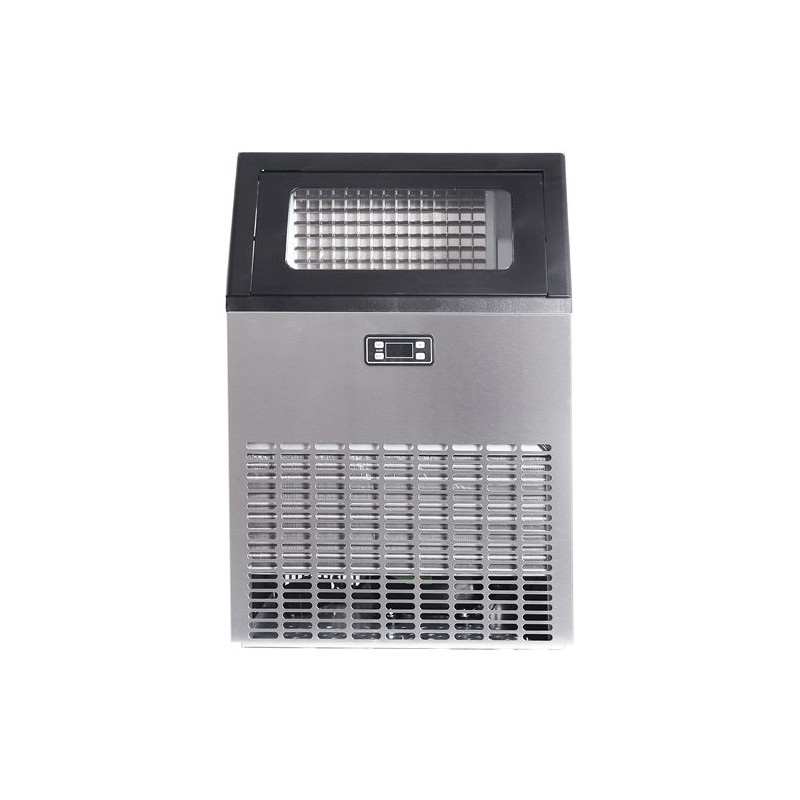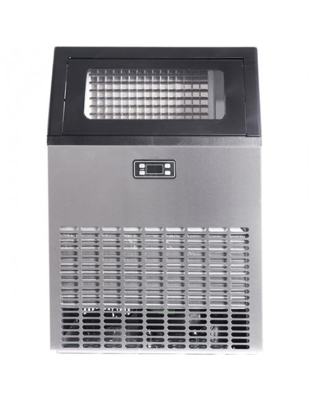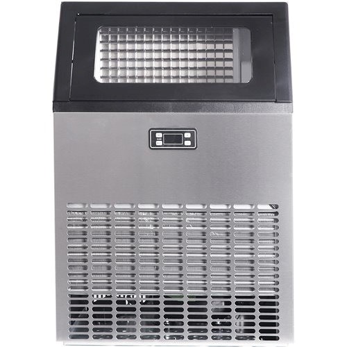 - This high-quality ice making machine is made of food-grade stainless steel, with a double-layer foam insulation layer. The one-button cleaning function makes it durable, sanitary and easy to clean. It is equipped with a digital LCD panel to make reservations. An automatic protection system is included, ensuring safety during operation. Perfect for coffee shops, hotels, bars, bakeries, cold drink shops, and other food industries.