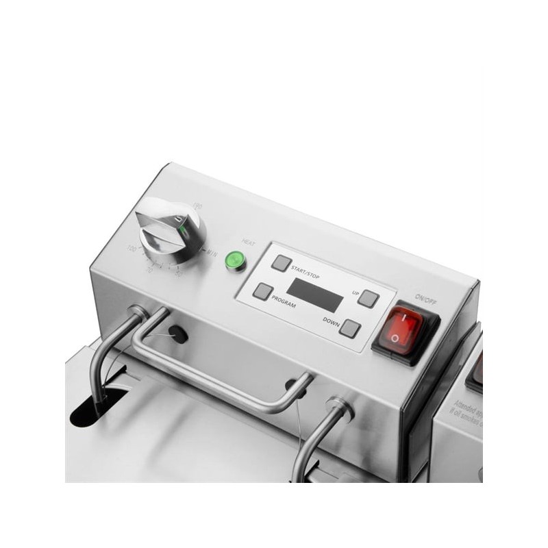 Stainless steel construction throughout ensures the fryer is exceptionally durable and easy to clean. And thanks to the independent dial temperature controls, it's easy to use too. The addition of the built-in digital timer helps you achieve the same cooking results every time - essential for reducing food waste and delivering consistently-cooked menu items, no matter who is doing the cooking. And when the fryer is not in use, the included stainless steel lids help to protect the oil until the next cook.