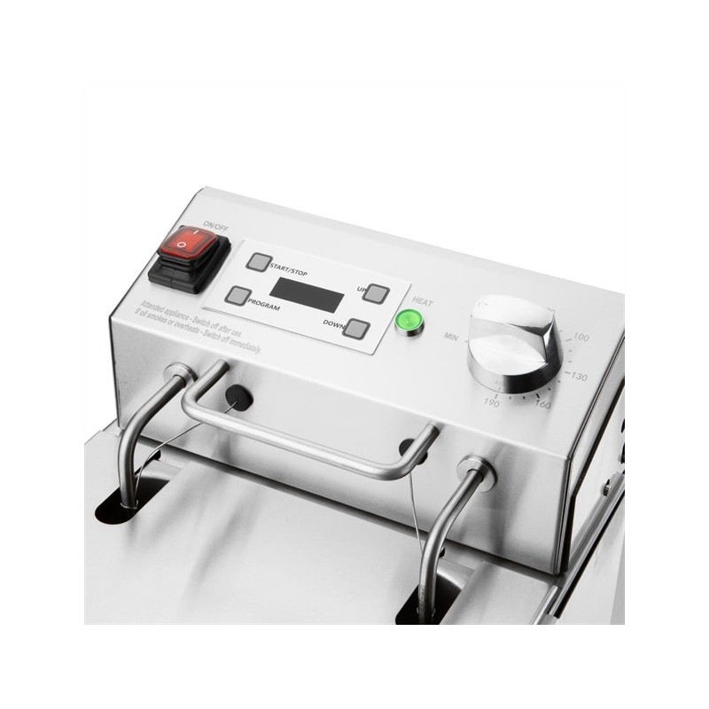 The Buffalo fryer is fitted with a powerful 2.9kW element, giving you the flexibility to cook large volumes whilst also recovering temperature quickly when filled with frozen foods. Temperature is controlled via the simple top-mounted dial thermostat, and thanks to the included digital timer and alarm, you can ensure consistent cooking every time.