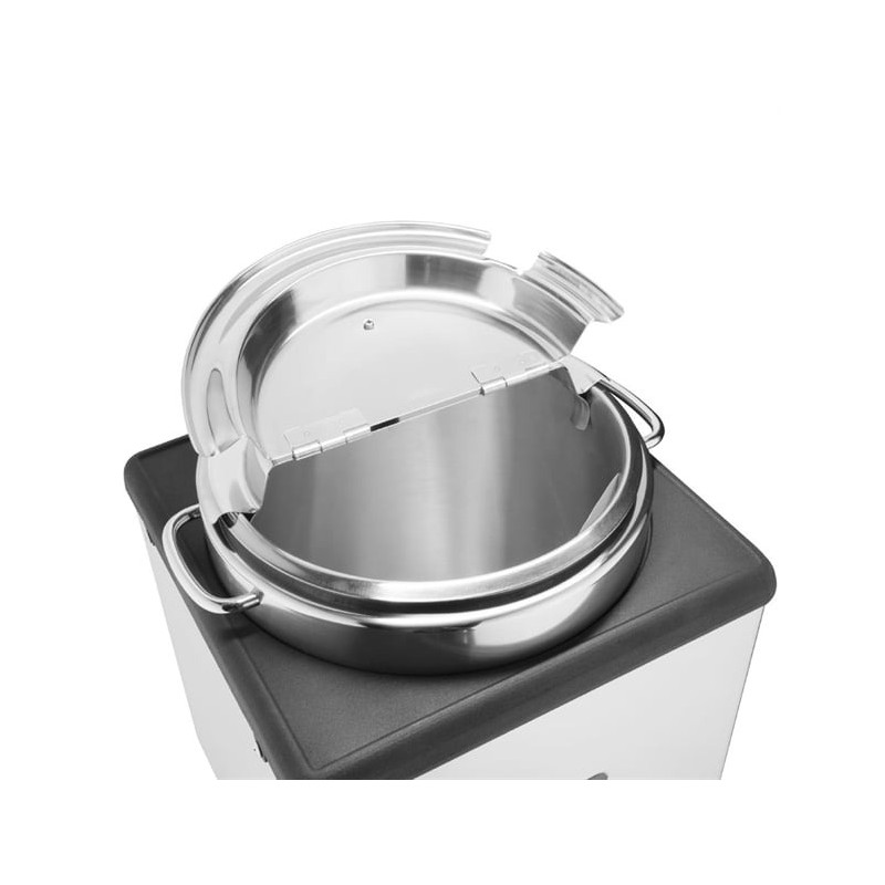 On the outside, the soup kettle features a strong polished stainless steel square design, making it perfect for customer facing areas. On the inside, it's got a removable 9Ltr stainless steel inner pot which can easily be filled and washed as needed.