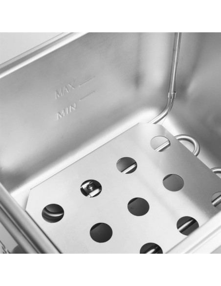 Whether you're frying fish or French fries, the Buffalo countertop fryer is the ideal solution for everyday use in the professional kitchen. With its powerful 2.8kW element and large 5 litre oil tank, the fryer offers a generous cooking capacity, making it a great option for frying multiple portions at the same time.
