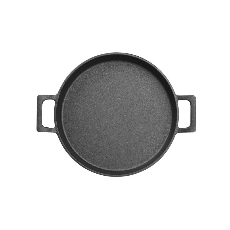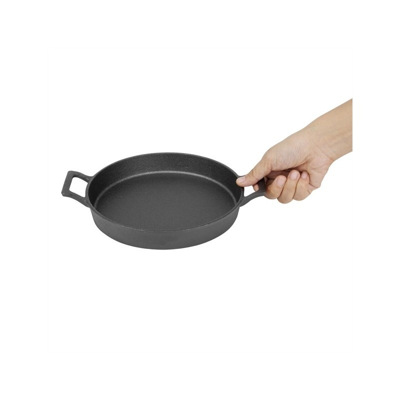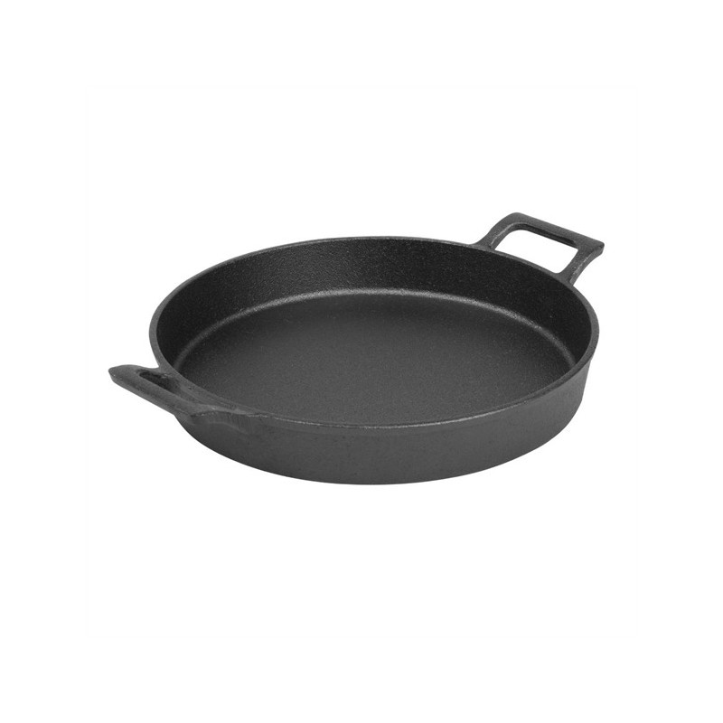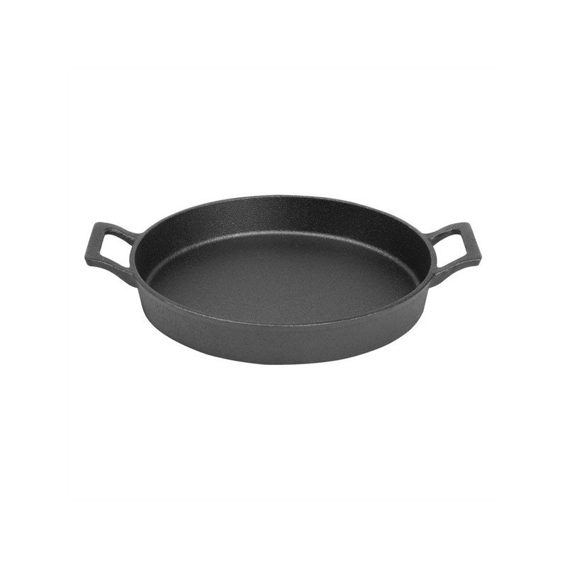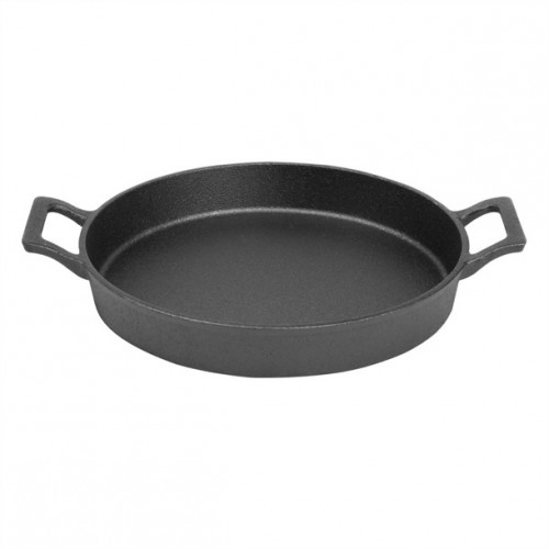 repare and serve food with a sizzle using this 200(Ø)x30(H)mm cast-iron round eared dish from Olympia. The dish is oven safe and designed for oven-to-table service - meaning you'll cut down on dishes and speed up your turnaround by saving time on plating up. Plus, the eared dish features two sturdy handles that are easy to carry, reducing the risk of accidental drops and spills. As well as being incredibly strong, the cast iron also has an authentic look that brings a rustic charm to your service, impressing guests with the presentation of their meal. For added convenience, the dish can be used on all cooking surfaces, including induction hobs.