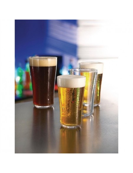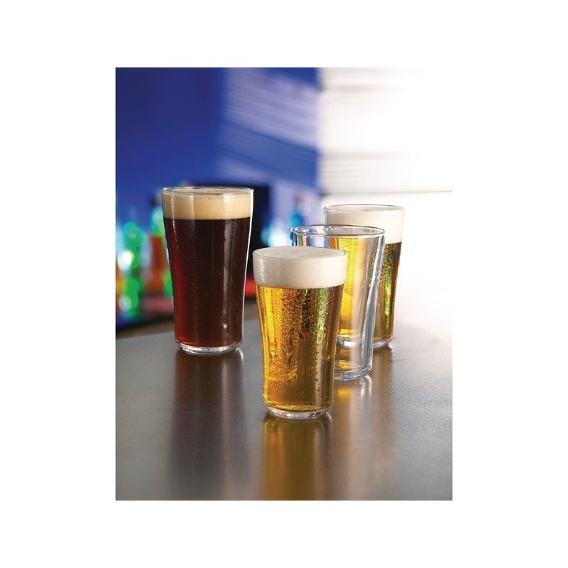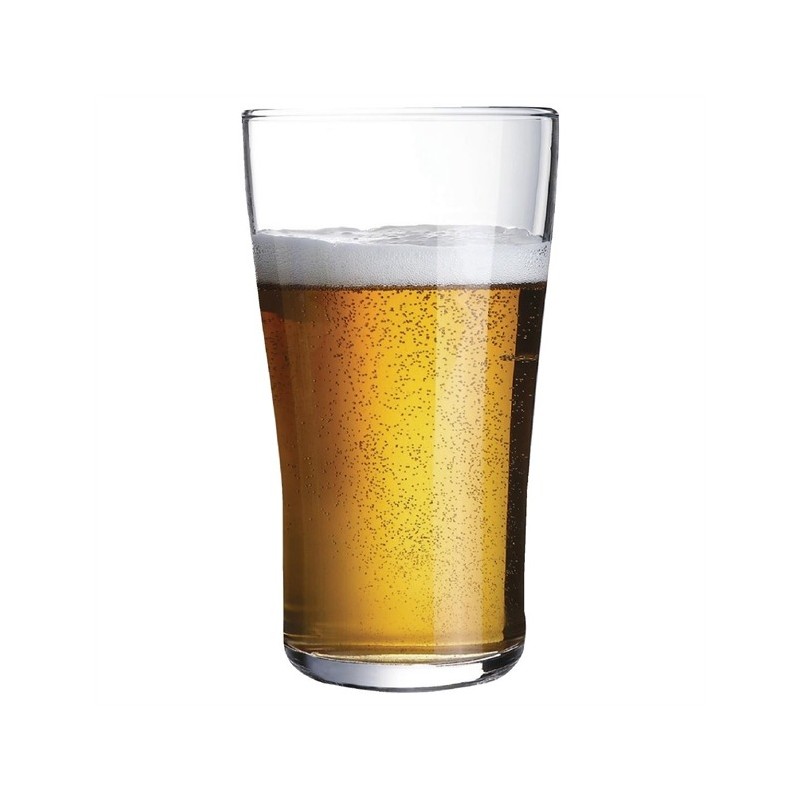 Arcoroc's Ultimate Pint Glass boasts a unique toughened design that enhances its resistance to mechanical and thermal shocks, making it less likely to shatter or crack, even in the busiest pubs and bars. Additionally, its Stress Fracture Management feature ensures that if the glass does break, it shatters into blunt fragments for safety. The glass's ergonomic shape, with a slight shoulder, provides a comfortable grip, while the engraved bottom promotes a constant flow of beer bubbles.