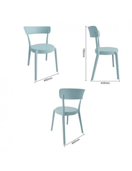 Breathe new life into your dining space with the Mila café chair by Bolero. Constructed from plastic, this chair is not only easy to clean but also stackable, making it convenient to store. Its light yet durable design ensures long-lasting use while also providing comfort and support. The icy blue colour of the chair complements various décor styles, making it a versatile addition to any indoor or outdoor setting. To top it off, the Mila café chair is UV resistant and features foot bungs to protect your flooring.