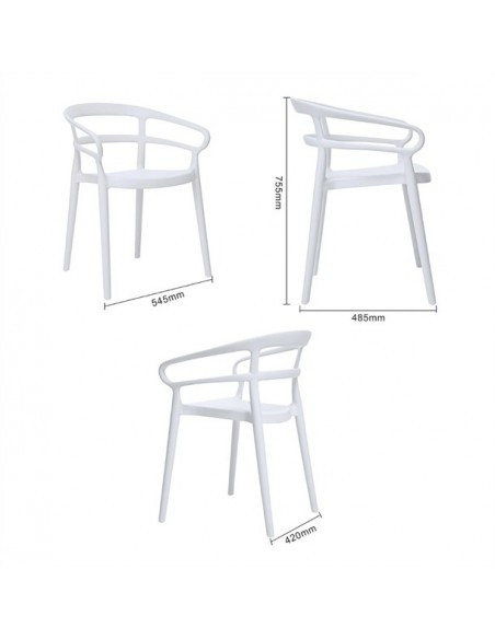 Refresh your space with this set of two curved-back café chairs from Bolero's Mateo collection. Ideal for indoor/outdoor dining or as accent pieces, these chairs feature a clean, simple design with a mid-century modern look. Made from premium injection moulded plastic, the chairs are not only easy to clean but also stackable, making them convenient to store. Their light yet durable design with slotted back rest and rounded seat provides excellent comfort and support. To top it off, these Mateo café chairs are UV resistant and feature foot bungs to protect floors from marks.