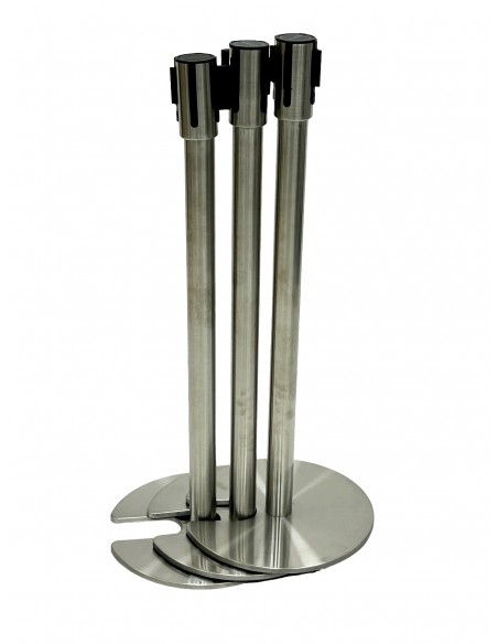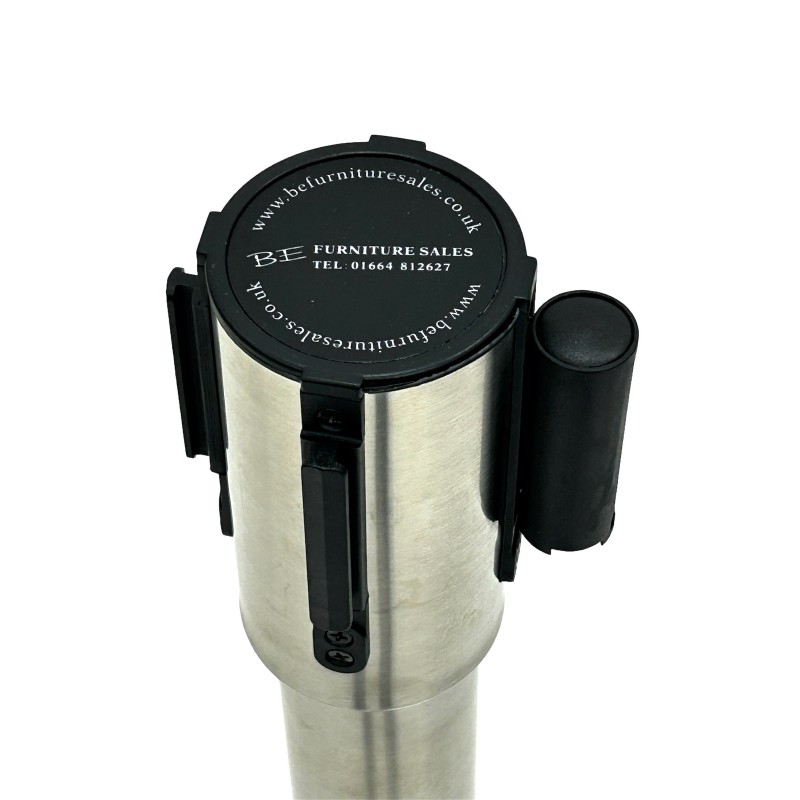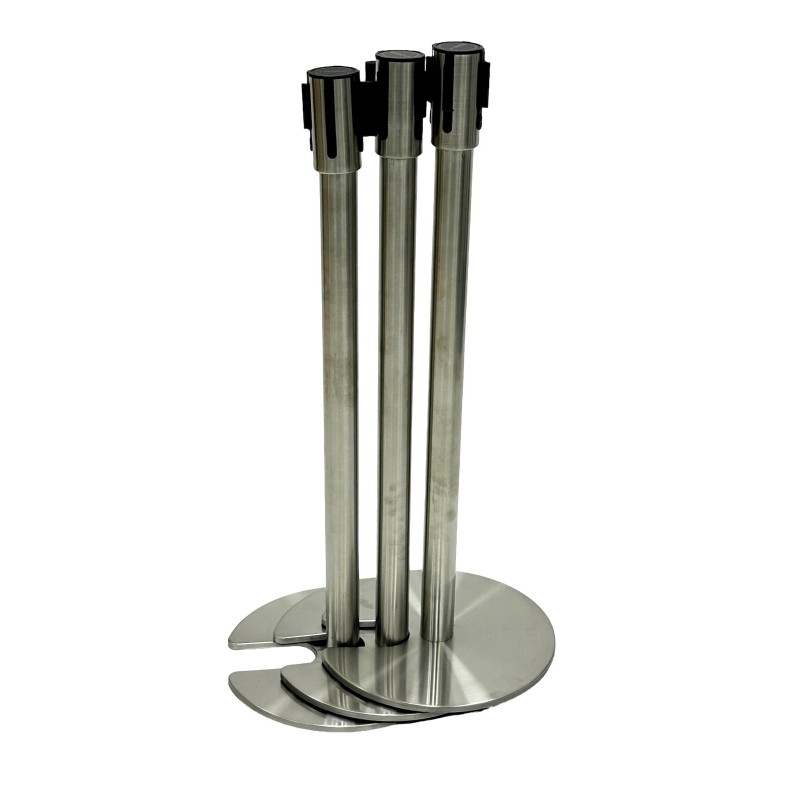 These stainless steel posts are suitable for use at restaurants, clubs, pubs, trade stands and exhibitions. These stainless steel posts stand 89 cm tall and have a base diameter of 36 cm. Each post them has a 1.9 Meter retractable black webbing with Maintain Social Distance printed on inside the top cassette that simply pulls out and attaches to the next post. These posts also stack neatly when not in use as they have a cut out base allowing them to stack neatly into each other.