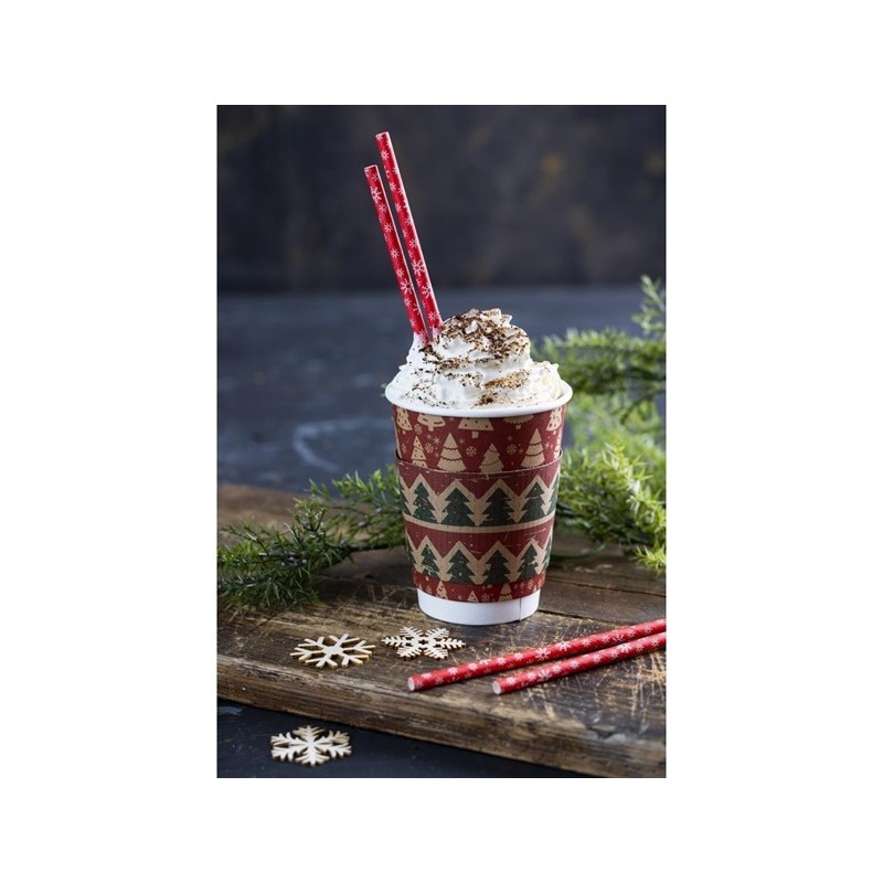 Featuring a fun snowflake design, these compostable paper straws from Fiesta add a festive touch to your drink service. Made from paper with food-grade inks and glues, the straws can be commercially composted within 12 weeks after use, meeting EN13432 standards. This helps you and your customers tackle plastic pollution and divert waste away from landfills, turning it into nutrient-rich compost for growing plants. Additionally, the 3-ply paper design ensures the straws resist softening for longer, giving your customers plenty of time to enjoy their cold drinks.