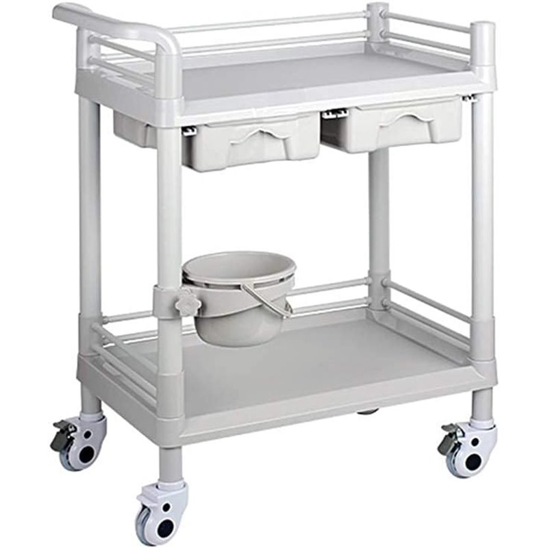 Maximize space and mobility with the Professional 2 Tier Mobile Trolley. Designed with ABS for durability, 4 wheels (2 with brakes), and 2 tiers of storage with a 2 drawers and waste bin, this mobile cart is perfect for food service, medical equipment, laboratories, and other applications. Discover how it can transform your workflow.